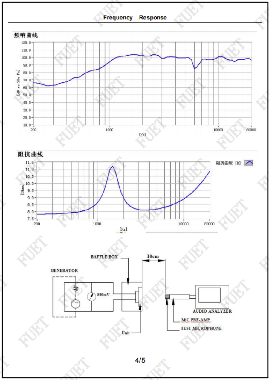 阻抗 8.0Ω±15% At 3000Hz 1.0Vrms
